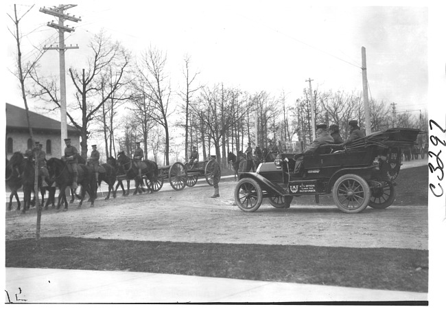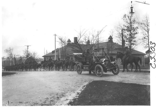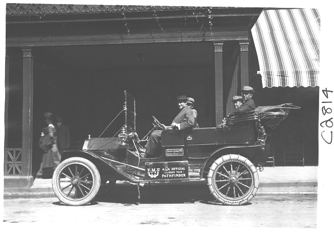 E.M.F. car on rural road to Denver, Colo., on pathfinder tour for 1909 Glidden Tour