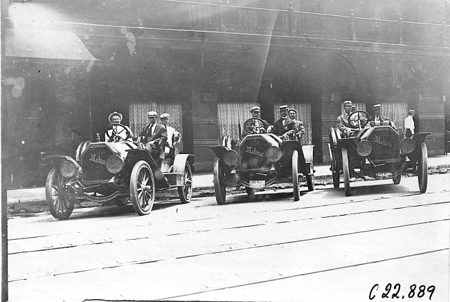 Still Image (1909)Part of Making of Modern MichiganMoline team parked at curb in Kansas City, Mo., at 1909 Glidden Tour