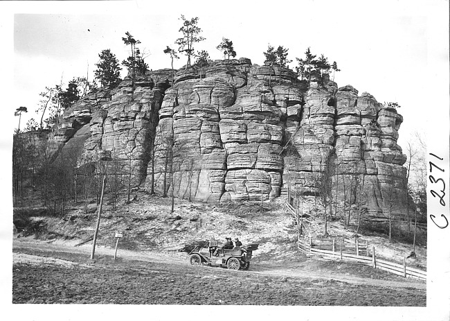 Still Image (1909)Part of Making of Modern MichiganE.M.F. car passing large rock formation, on pathfinder tour for 1909 Glidden Tour
