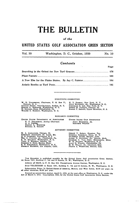 The bulletin of the United States Golf Association Green Section. Vol. 10 no. 10 (1930 October)