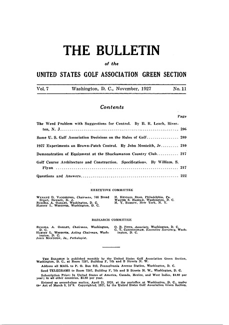 The bulletin of the United States Golf Association Green Section. Vol. 7 no. 11 (1927 November)