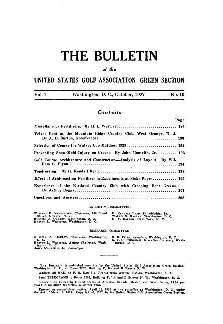 The bulletin of the United States Golf Association Green Section. Vol. 7 no. 10 (1927 October)