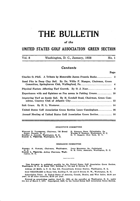 The bulletin of the United States Golf Association Green Section. Vol. 8 no. 1 (1928 January)