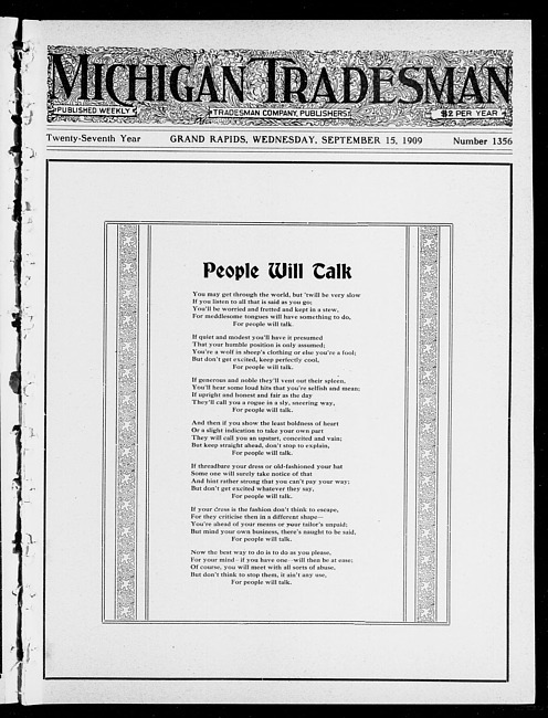 Michigan tradesman. Vol. 27 no. 1356 (1909 September 15)