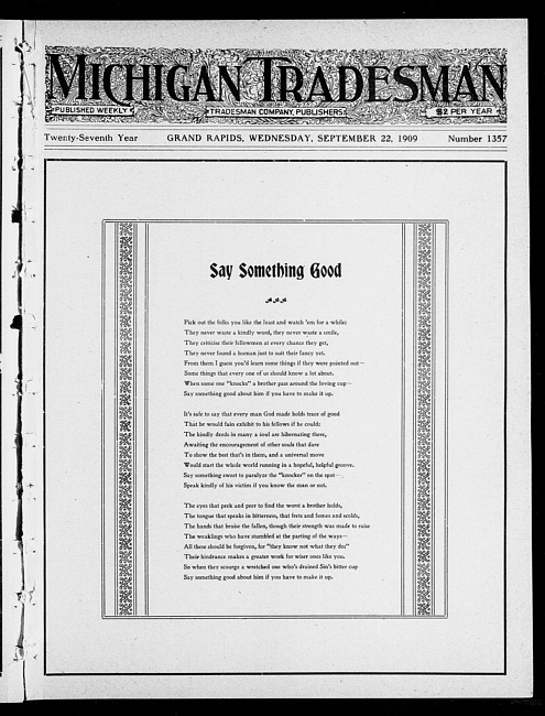 Michigan tradesman. Vol. 27 no. 1357 (1909 September 22)