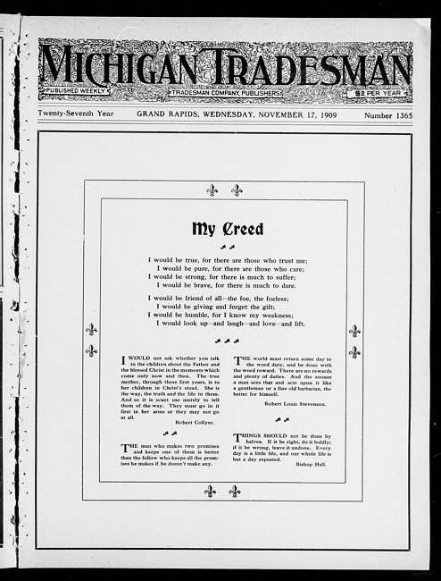 Michigan tradesman. Vol. 27 no. 1365 (1909 November 17)