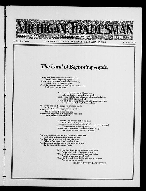 Michigan tradesman. Vol. 51 no. 2626 (1934 January 17)