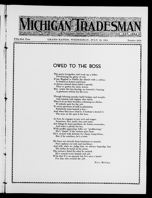 Michigan tradesman. Vol. 51 no. 2652 (1934 July 18)