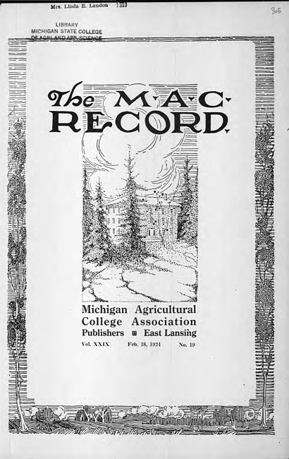 The M.A.C. record. Vol. 29 no. 19 (1924 February 18)
