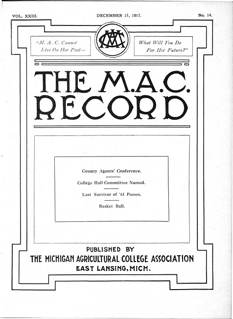 The M.A.C. record. Vol. 23 no. 14 (1917 December 21)