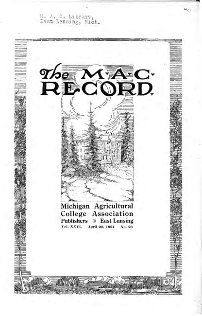 The M.A.C. record. Vol. 27 no. 4 (1921 October 21)