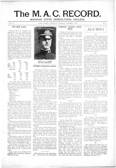 The M.A.C. record. Vol. 17 no. 2 (1911 October 3)