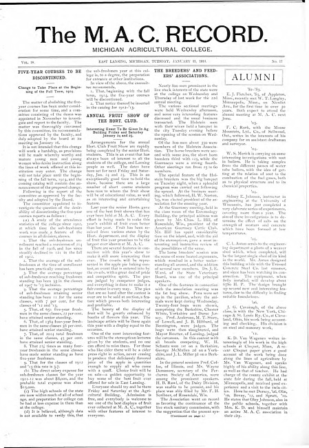 The M.A.C. record. Vol. 18 no. 17 (1913 January 21)