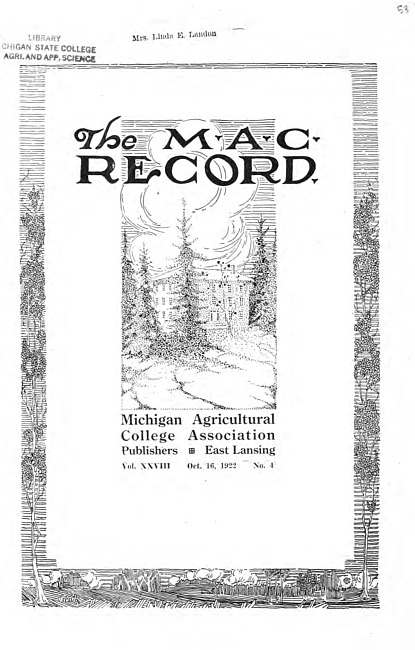 The M.A.C. record. Vol. 28 no. 4 (1922 October 16)