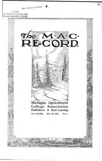 The M.A.C. record. Vol. 28 no. 6 (1922 October 30)