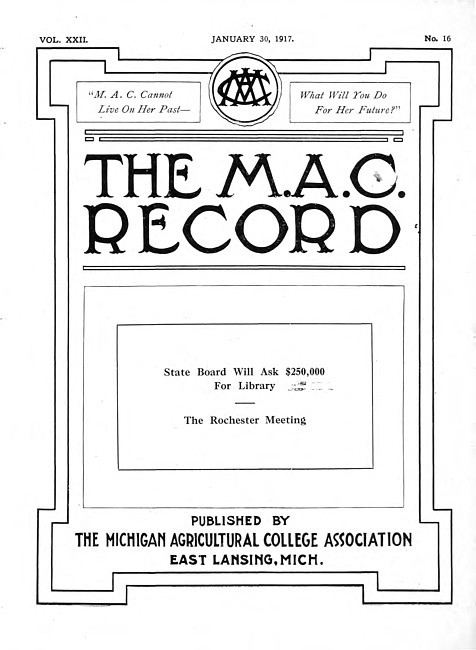 The M.A.C. record. Vol. 22 no. 16 (1917 January 30)