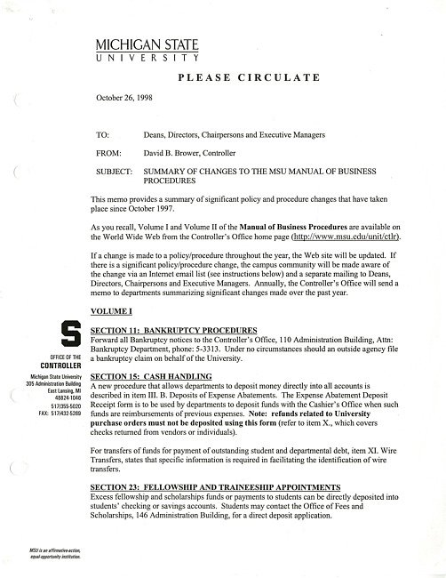 Collection: MSU Manual of Business Procedures (UA 5.1)