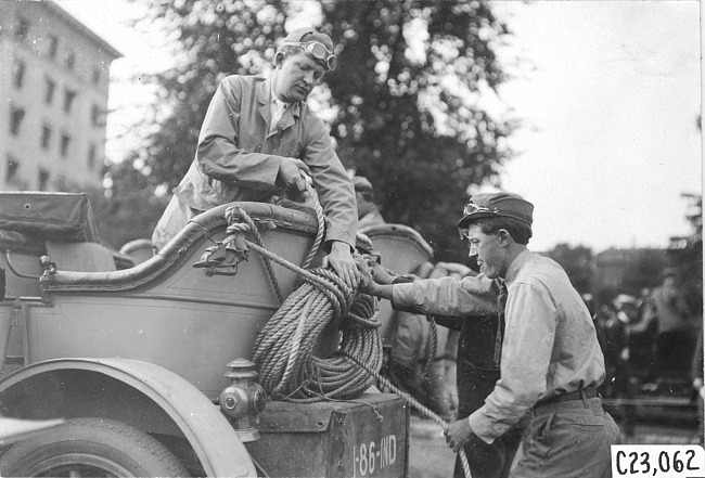 Still Image (1909)Part of Making of Modern MichiganGlidden tourists secure rope to back of car, at 1909 Glidden Tour