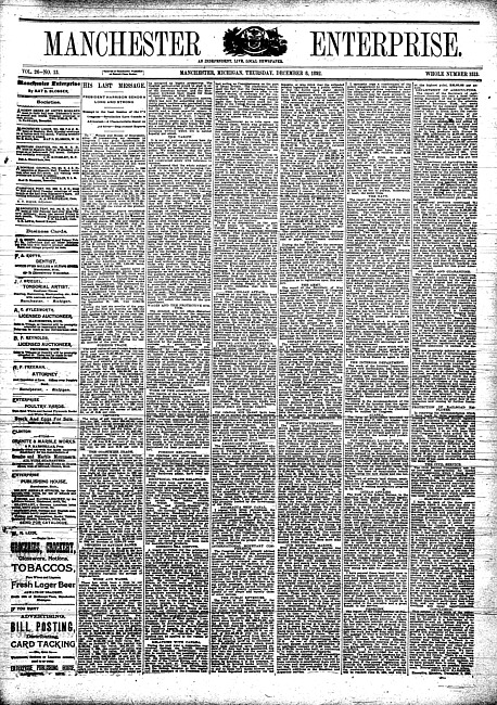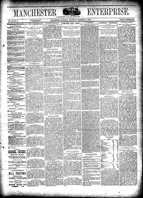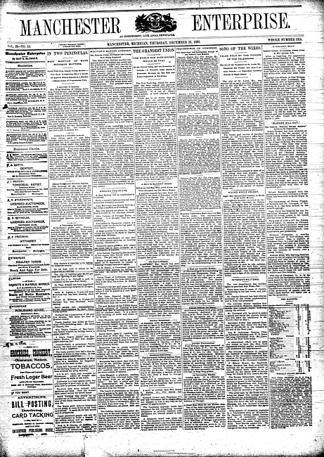 Text (1892)Part of Making of Modern MichiganManchester enterprise. Vol. 26 no. 15 (1892 December 22)