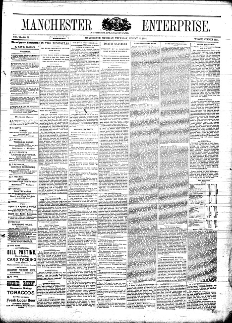 Text (1894)Part of Making of Modern MichiganManchester enterprise. Vol. 27 no. 51 (1894 August 30)