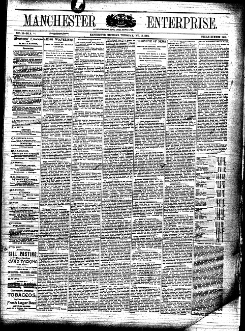 Text (1894)Part of Making of Modern MichiganManchester enterprise. Vol. 28 no. 6 (1894 October 18)