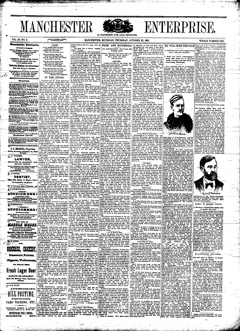 Text (1891)Part of Making of Modern MichiganManchester enterprise. Vol. 25 no. 6 (1891 October 22)