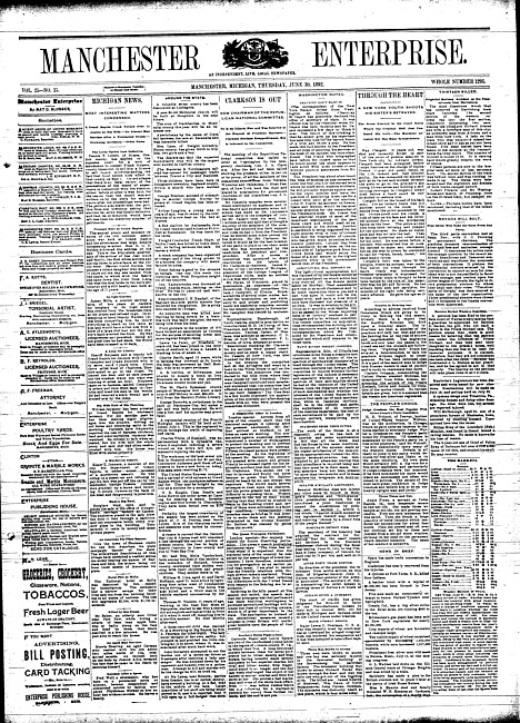 Text (1891)Part of Making of Modern MichiganManchester enterprise. Vol. 25 no. 22 (1892 February 11)