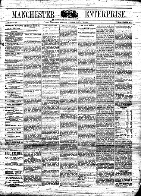 Text (1894)Part of Making of Modern MichiganManchester enterprise. Vol. 27 no. 23 (1894 February 15)