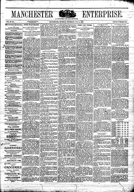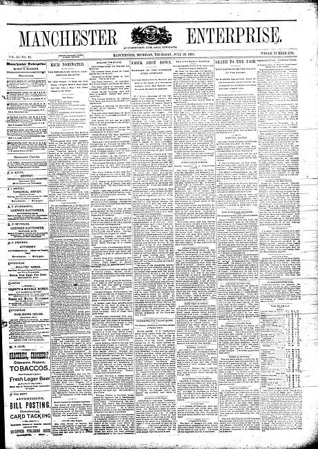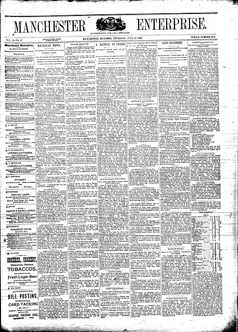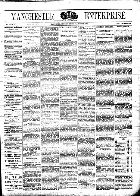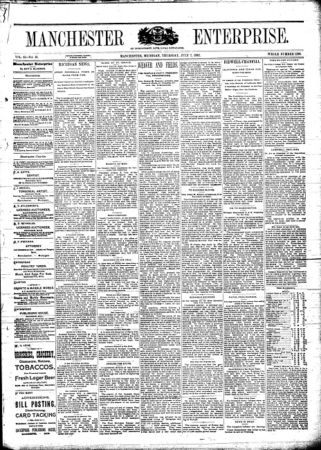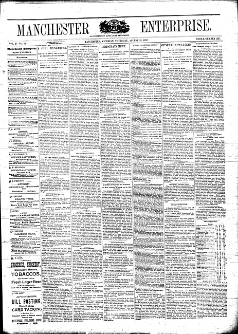 Text (1894)Part of Making of Modern MichiganManchester enterprise. Vol. 25 no. 48 (1892 August 11)