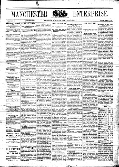 Text (1893)Part of Making of Modern MichiganManchester enterprise. Vol. 26 no. 24 (1893 February 23)
