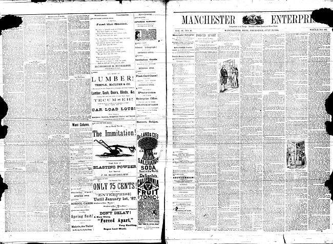 Text (1887)Part of Making of Modern MichiganManchester enterprise. Vol. 20 no. 19 (1887 January 20)