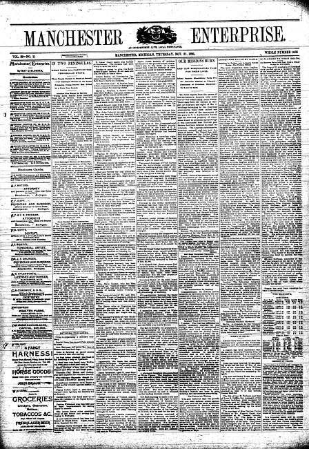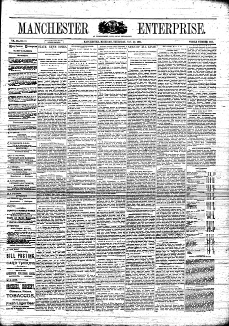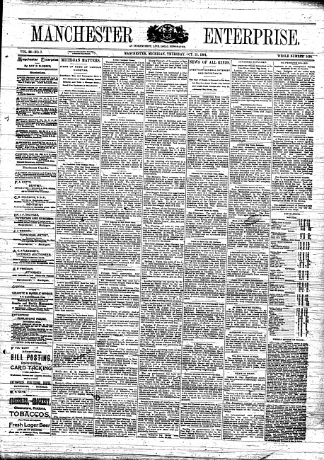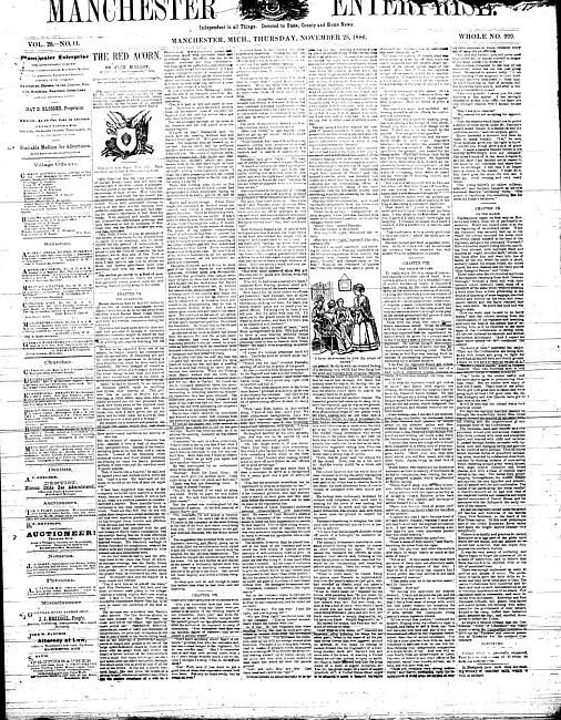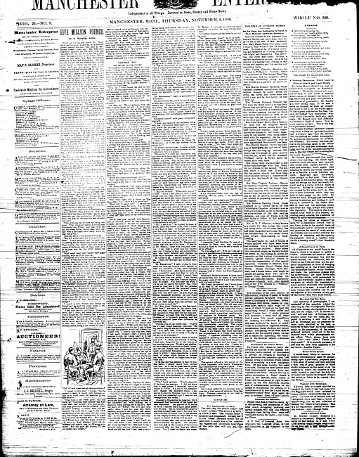 Text (1895)Part of Making of Modern MichiganManchester enterprise. Vol. 20 no. 8 (1886 November 4)