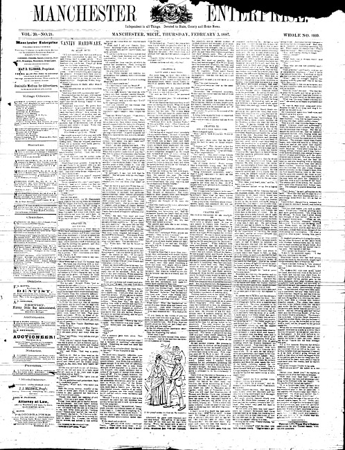 Text (1887)Part of Making of Modern MichiganManchester enterprise. Vol. 20 no. 21 (1887 February 3)