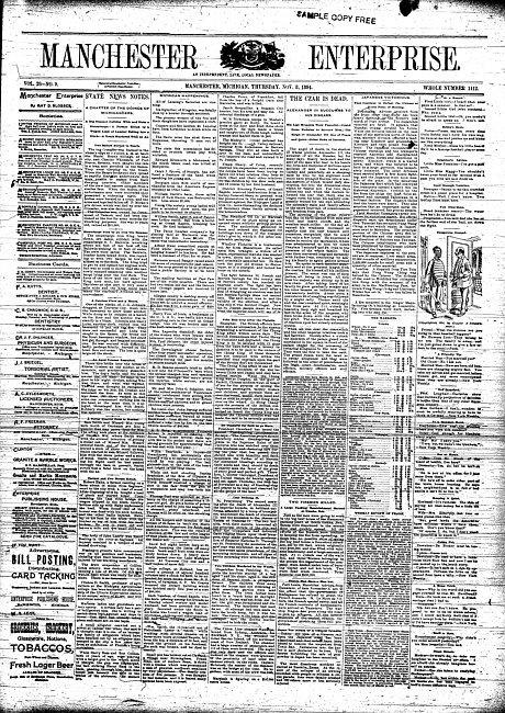Text (1893)Part of Making of Modern MichiganManchester enterprise. Vol. 28 no. 11 (1894 November 22)