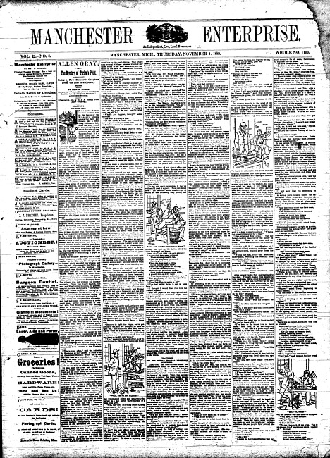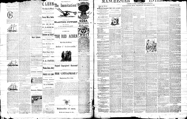 Text (1887)Part of Making of Modern MichiganManchester enterprise. Vol. 20 no. 10 (1886 November 18)