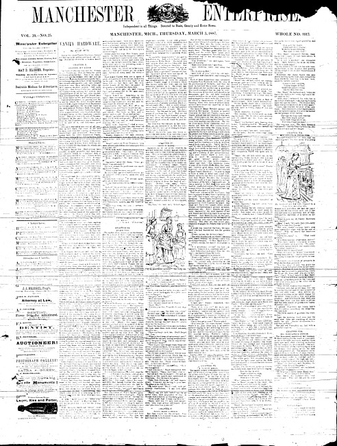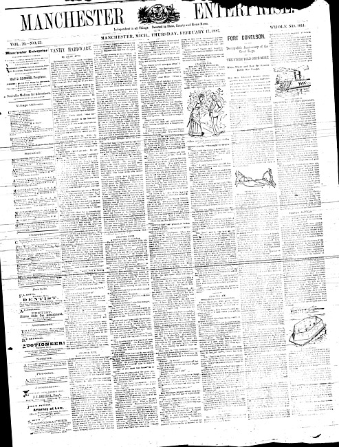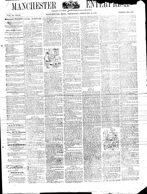 Text (1887)Part of Making of Modern MichiganManchester enterprise. Vol. 20 no. 23 (1887 February 17)