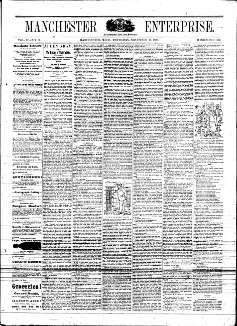 Text (1888)Part of Making of Modern MichiganManchester enterprise. Vol. 22 no. 11 (1888 November 22)