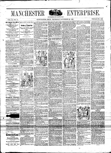 Text (1888)Part of Making of Modern MichiganManchester enterprise. Vol. 22 no. 9 (1888 November 8)