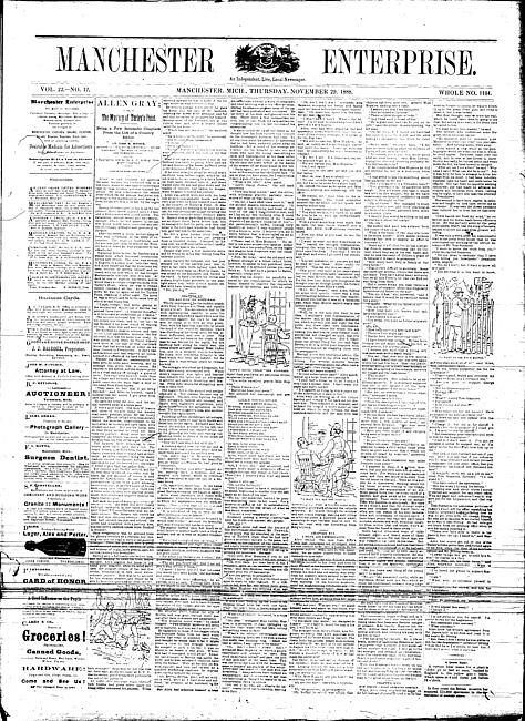 Text (1888)Part of Making of Modern MichiganManchester enterprise. Vol. 22 no. 12 (1888 November 29)