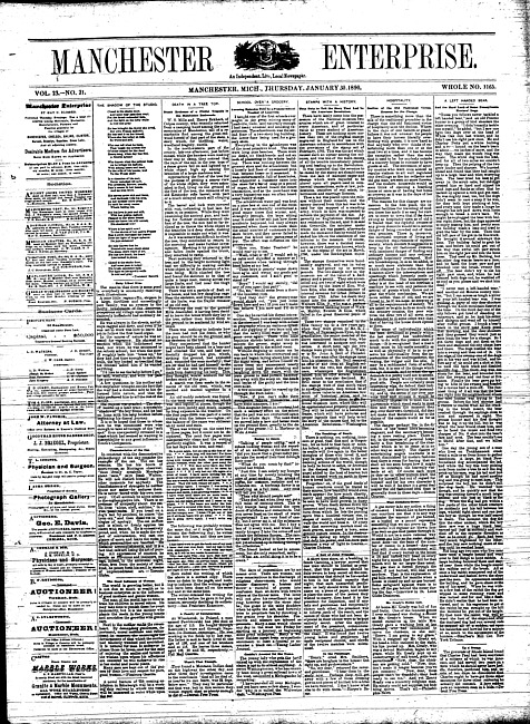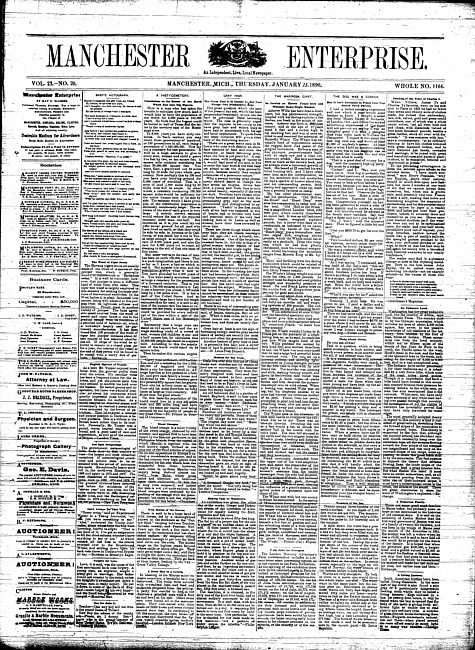 Text (1890)Part of Making of Modern MichiganManchester enterprise. Vol. 23 no. 21 (1890 January 30)
