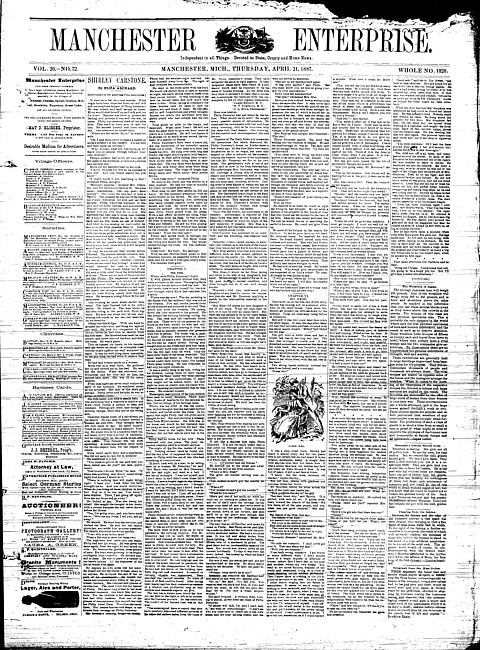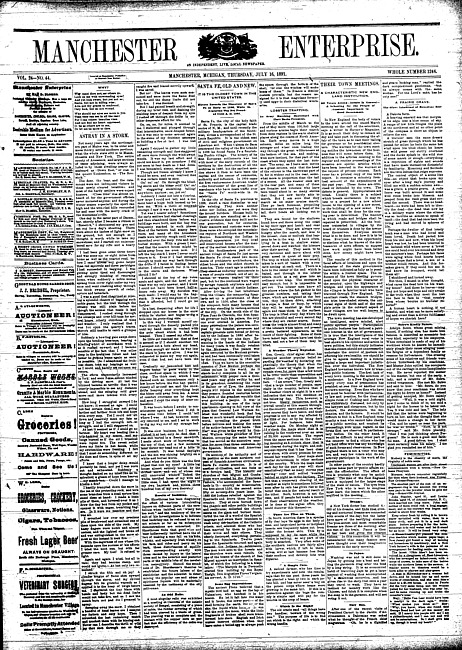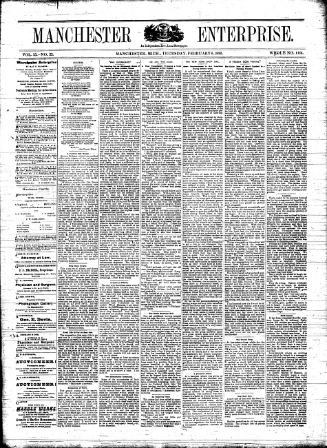 Text (1891)Part of Making of Modern MichiganManchester enterprise. Vol. 19 no. 15 (1885 December 24)