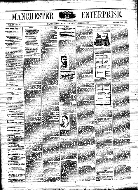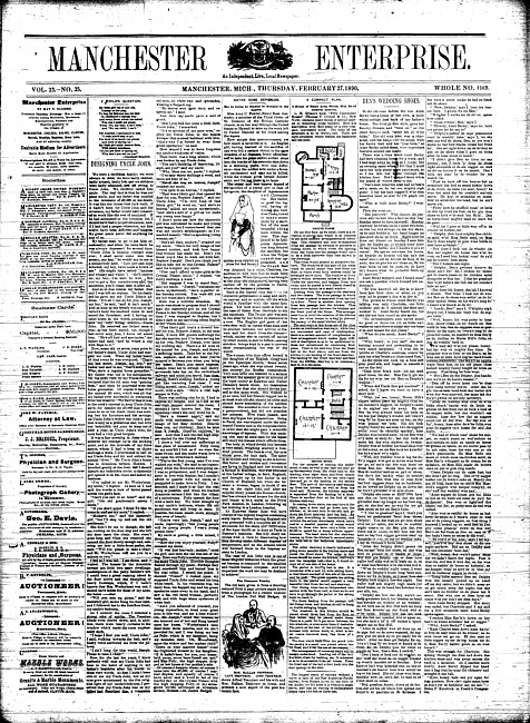 Text (1890)Part of Making of Modern MichiganManchester enterprise. Vol. 23 no. 25 (1890 February 27)
