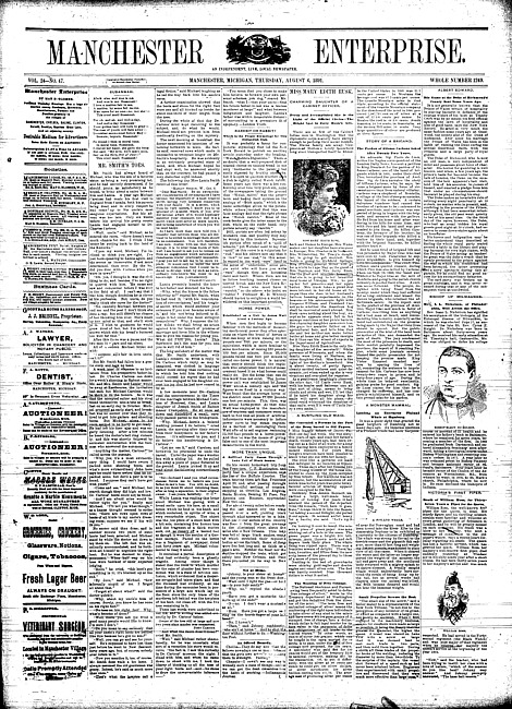 Text (1891)Part of Making of Modern MichiganManchester enterprise. Vol. 24 no. 50 (1891 August 27)