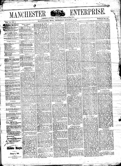 Text (1886)Part of Making of Modern MichiganManchester enterprise. Vol. 19 no. 5 (1885 October 15)