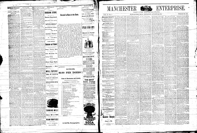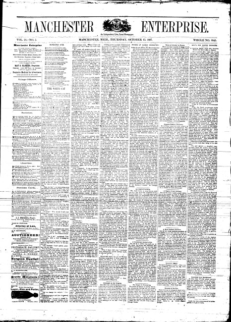 Text (1886)Part of Making of Modern MichiganManchester enterprise. Vol. 21 no. 5 (1887 October 13)