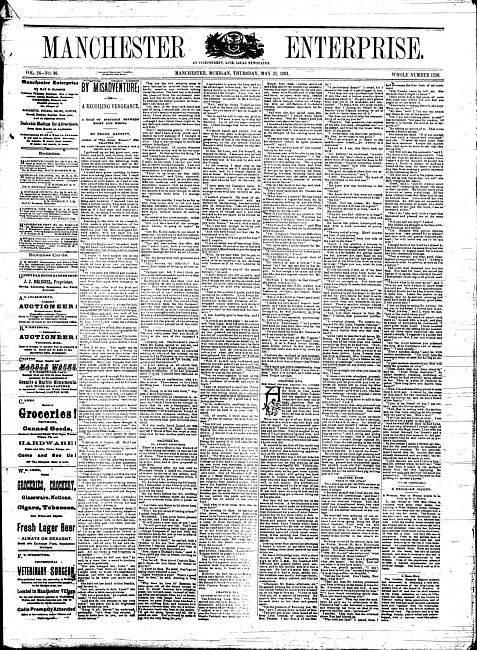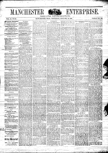 Text (1886)Part of Making of Modern MichiganManchester enterprise. Vol. 19 no. 20 (1886 January 28)