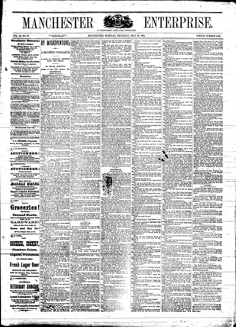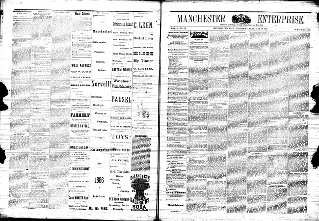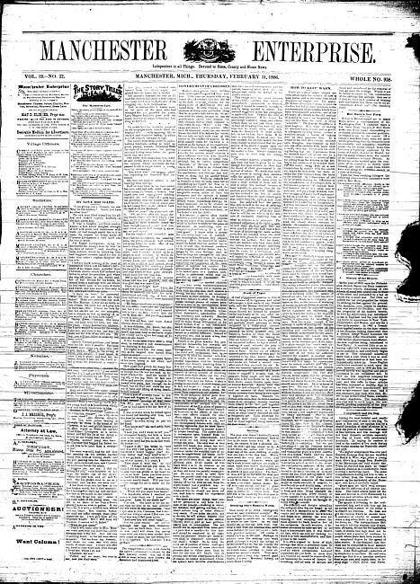 Text (1886)Part of Making of Modern MichiganManchester enterprise. Vol. 19 no. 23 (1886 February 18)