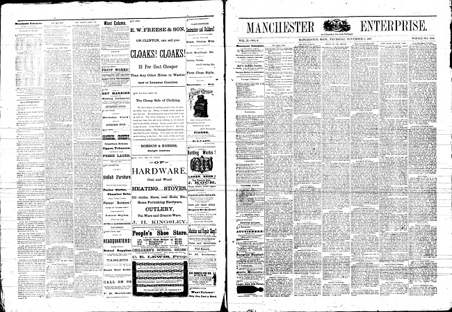 Text (1885)Part of Making of Modern MichiganManchester enterprise. Vol. 19 no. 22 (1886 February 11)