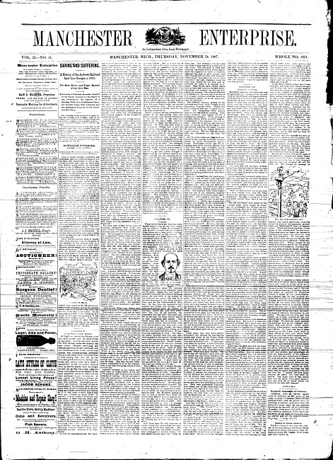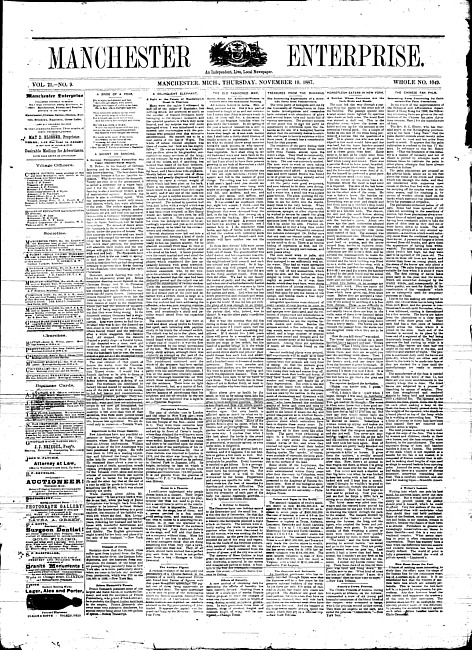 Text (1887)Part of Making of Modern MichiganManchester enterprise. Vol. 21 no. 11 (1887 November 24)