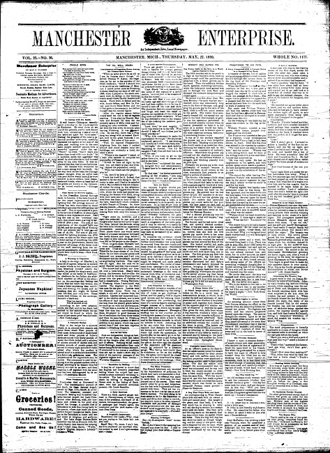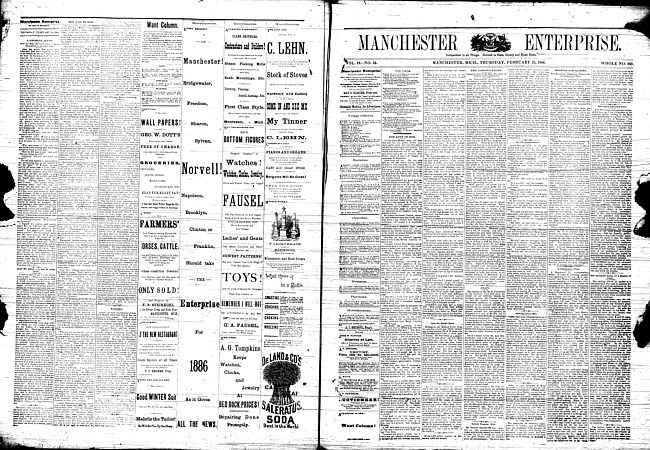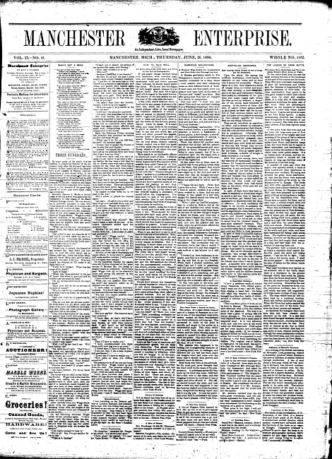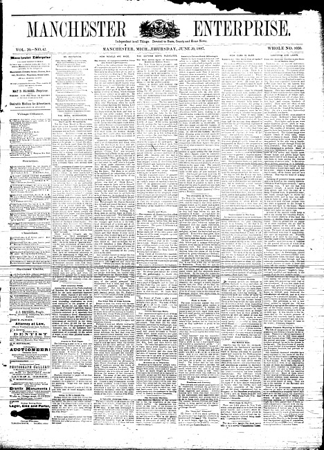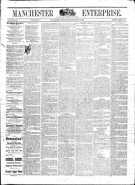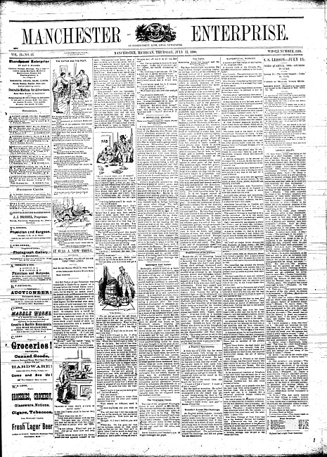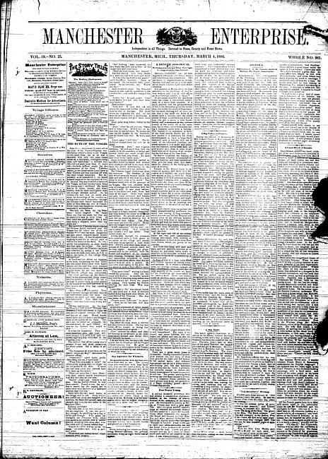 Text (1891)Part of Making of Modern MichiganManchester enterprise. Vol. 19 no. 24 (1886 February 25)